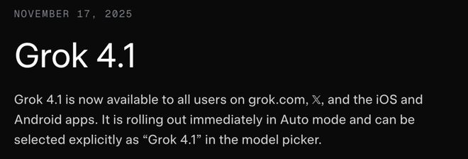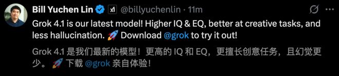 一早,马斯克携xAI投下一颗重磅炸弹——Grok 4.1正式上线,而且对所有人免费。