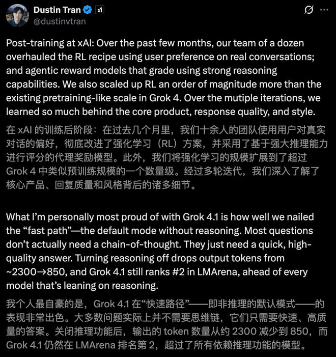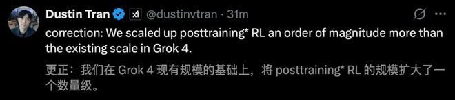 Grok 4.1之所以可以迅猛进化,xAI团队将其后训练阶段的RL规模,又扩大了一个数量级。