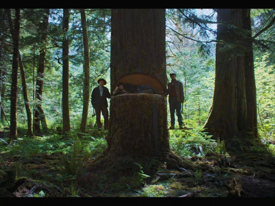伐木工被倒下的树木击中死亡,华工被推下悬崖,大家为了谋生出卖劳力,最终却成为了文明和进步的耗材。